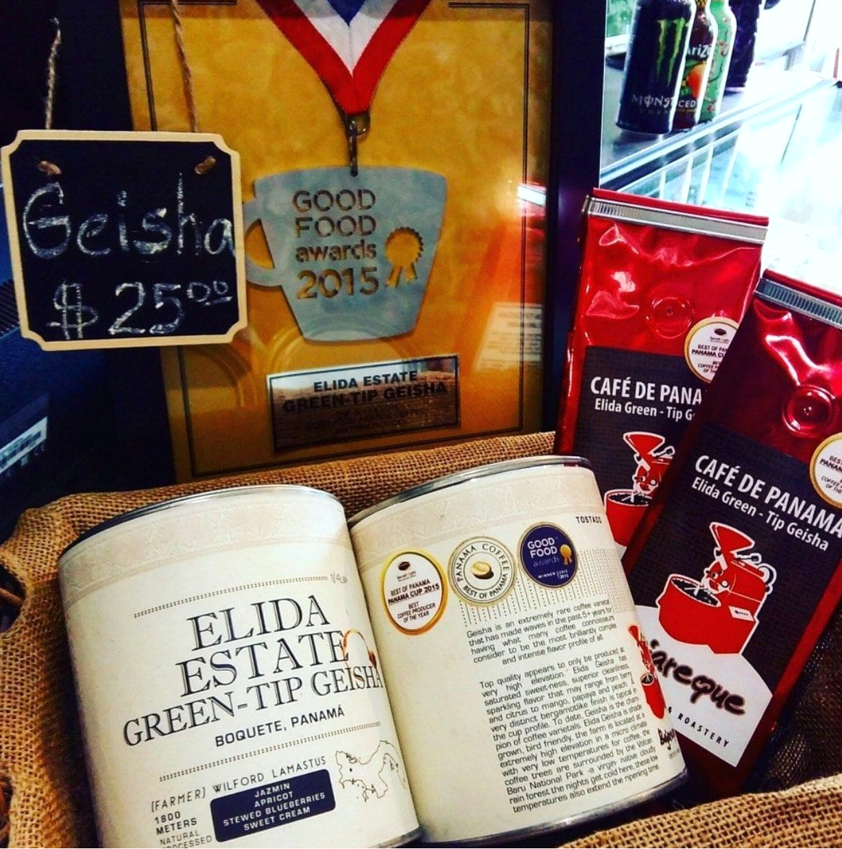 Чудесная история сорта-чемпиона так бы и не началась, если бы не эта маленькая история: в 2004 году, в Панаме на соревновании Best of Panama Даниэль Петресон из семейной фермы Hacienda La Esmeralda поразил судей незабываемым вкусовым профилем с длинным послевкусием: очень сочный, цветочный и сладкий. Дело в том, что все, что он сделал, это принес на соревнование не смешанные между собой бобы, а только один сорт.