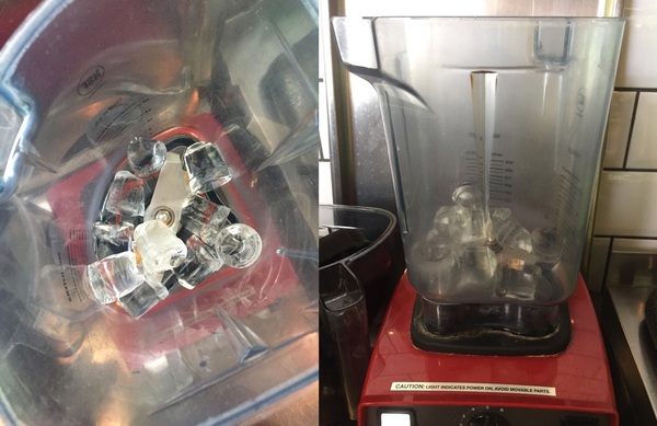 В смесительный стакан блендера добавьте совок льда.