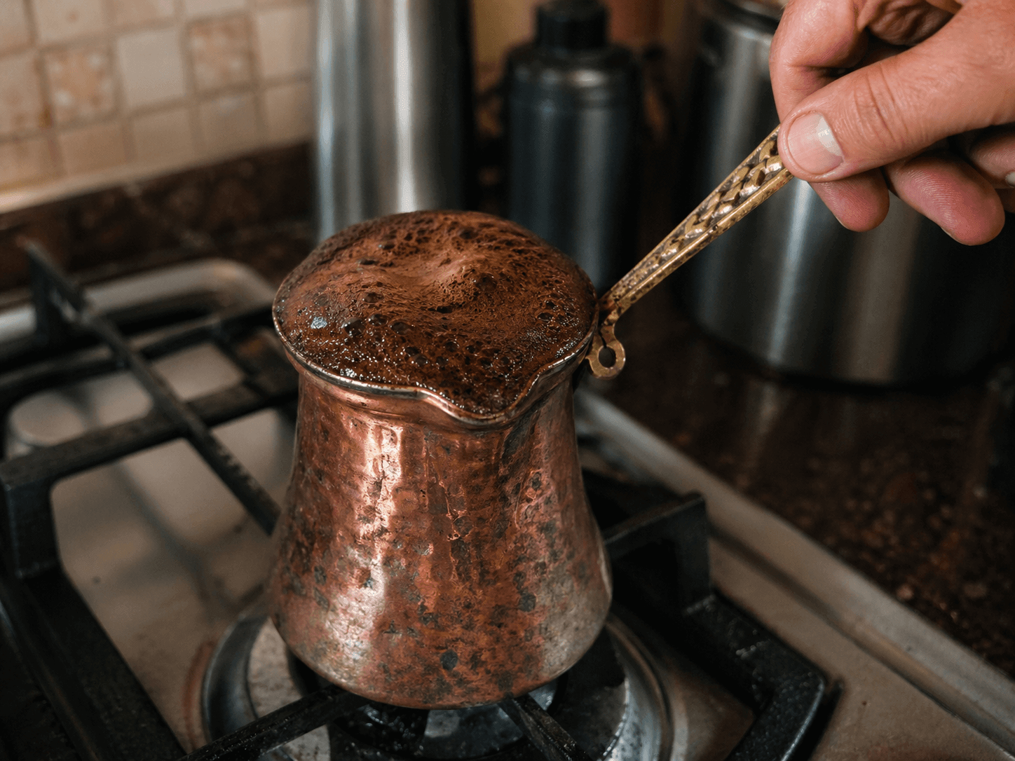 Кипятить кофе в бурном смысле не нужно. Сильное кипение чаще портит вкус, чем помогает ему. Лучше поймать момент, когда пена уже уверенно идёт вверх, но напиток ещё не ушёл в резкое кипение.