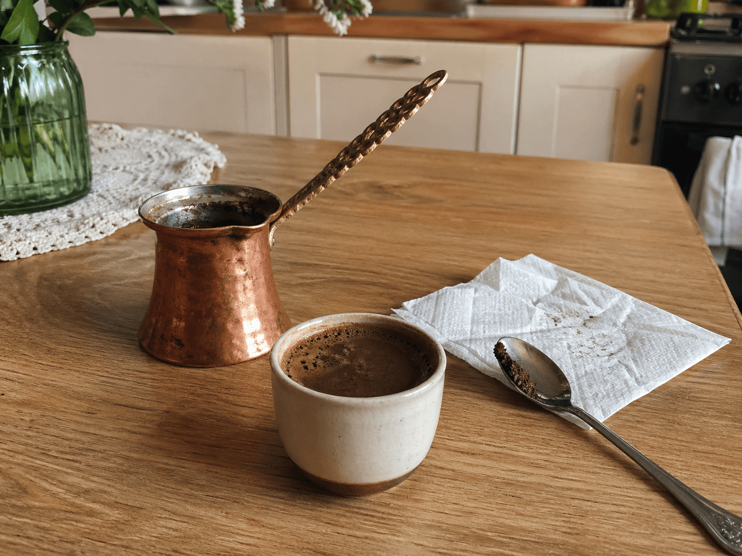 Главный ориентир в турке - не жёсткое время, а подъём пены. Именно он подсказывает, что напиток близок к готовности. Из-за этого не стоит привязываться к строгим 2-4 минутам: одна турка, одна плита и один объём воды будут вести себя иначе, чем другой набор условий.