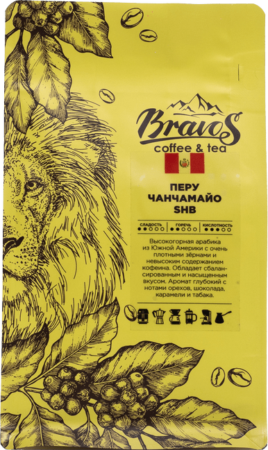 Изысканный вкус и аромат высокогорной перуанской арабики, выращенной в экологически чистых условиях, не оставит равнодушным кофейных ценителей. Отличается высокой плотностью кофейных зерен и низким содержанием кофеина. При этом вкус напитка остается сбалансированным и насыщенным. Ощущаются ноты ванили, орехов и цитрусовая кислинка. Аромат глубокий с нотами шоколада, карамели и табака.