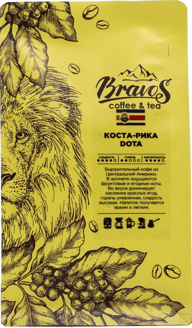 Коста-Рика – поставщик преимущественно высокосортной арабики на мировой рынок. В аромате этого выразительного кофе из Центральной Америки ощущаются фруктовые и ягодные ноты, которые покоряют с первого глотка. Во вкусе доминирует кислинка красных ягод, горечь умеренная. Кофе отличается высокой сладостью и приятным послевкусием. Напиток получается ярким и легким. Поклонники этого сорта отмечают хороший баланс между горчинкой и кислинкой. Рекомендуется попробовать ценителям фруктовых нот.