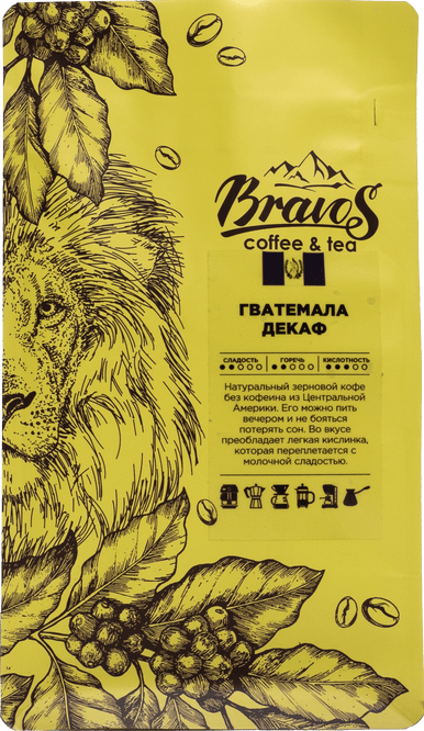 Тот случай, когда наслаждаться ароматным кофейным напитком можно не только по утрам, но и по вечерам, не боясь потерять сон. Гватемала Декаф – натуральный зерновой кофе без кофеина из Центральной Америки. Кофеин удаляется и зерен до обжарки безопасным способом, что практически не влияет на вкус готового напитка и даже придает ему особый шарм. Легкая кислинка во вкусе переплетается с молочной сладостью и приятным карамельным послевкусием.