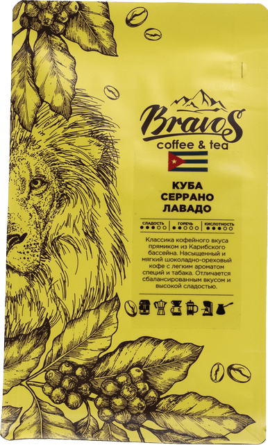 Кубинский кофе известен во всем мире. Прежде чем попасть на экспорт кофейные зерна из Карибского бассейна проходят жесткий отбор. За счет более низких высот произрастания, чем у большинства производимой в мире арабики, кофе с Кубы характеризуется меньшей кислинкой и большей насыщенностью. Куба Серрано Лавадо – арабика средней степени обжарки, имеет классический кофейный вкус. Это мягкий шоколадно-ореховый кофе с легким ароматом специй и табака. Подходит любителям сладости во вкусе.