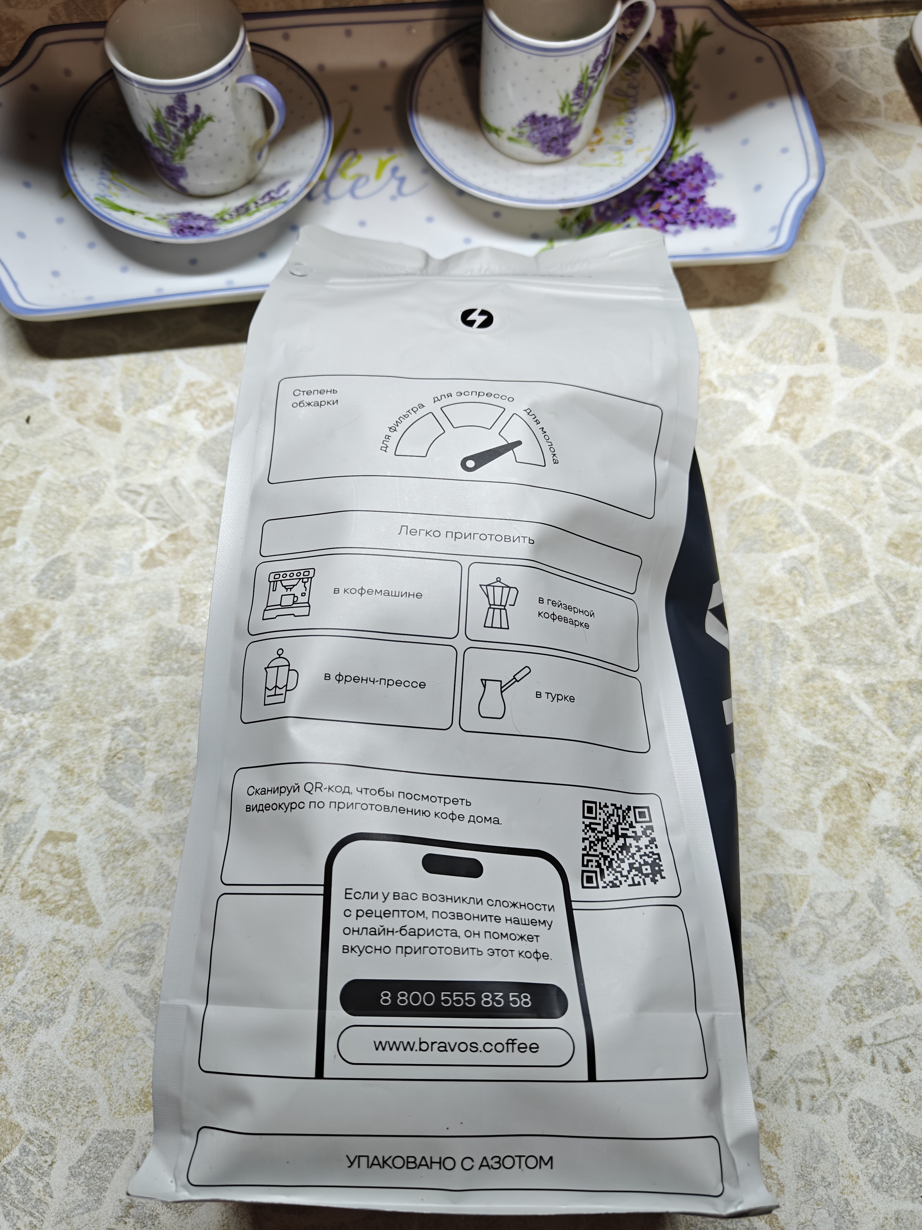 Купила кофе Бравос по рекомендации друга. Очень довольна! Взяла арабику и смесь для эспрессо. Ароматный, насыщенный вкус, не слишком горький.